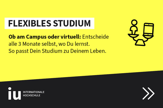 Studieren, wie Du es willst? Im myStudium an der IU Internationalen Hochschule (IU) geht das: Du studierst Vollzeit und kannst jedes Quartal entscheiden, ob Du an einem der über 30 Standorte der IU oder an dem virtuellen Campus lernen möchtest. So passt sich das Studium flexibel Deinem Leben an.